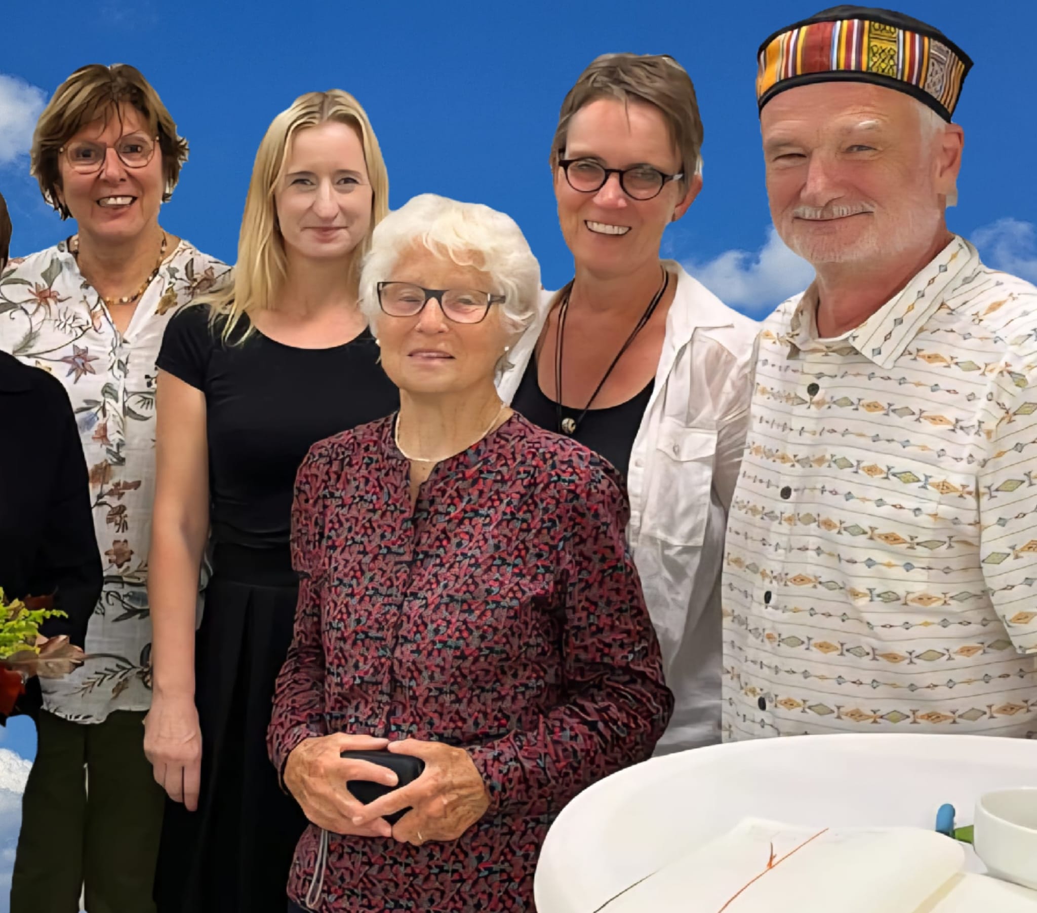 v.l. Renate Susen, Nicole Traut, Apollonia Harwarth, Lu J. Hüls, Berthold Mertz, n.a.d.B.: Ulrich Brockmann (Bildrechte Gruppe DruckWelten)